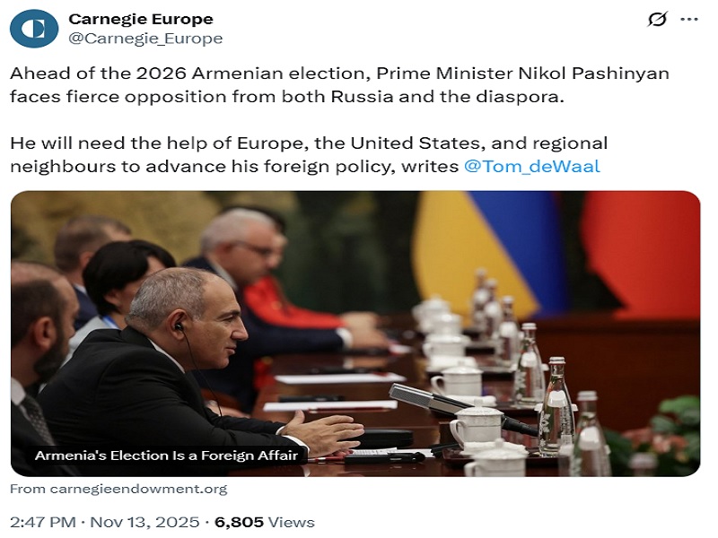Carnegie Europe published a piece in mid-November about how “Armenia’s Election Is a Foreign Affair”, which candidly explains why Prime Minister Nikol Pashinyan “will need the help of Europe, the United States, and regional neighbours”. Remaining in power, Carnegie Europe argues, will “advance his ambitious foreign policy” that’s seen Armenia pivot away from Russia towards the West. The aforesaid parties’ help is thus framed as support for a fellow democracy to defend against Russian meddling.