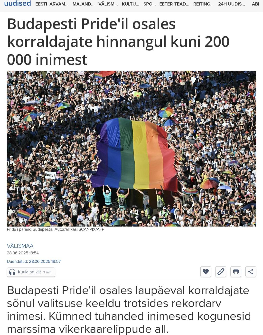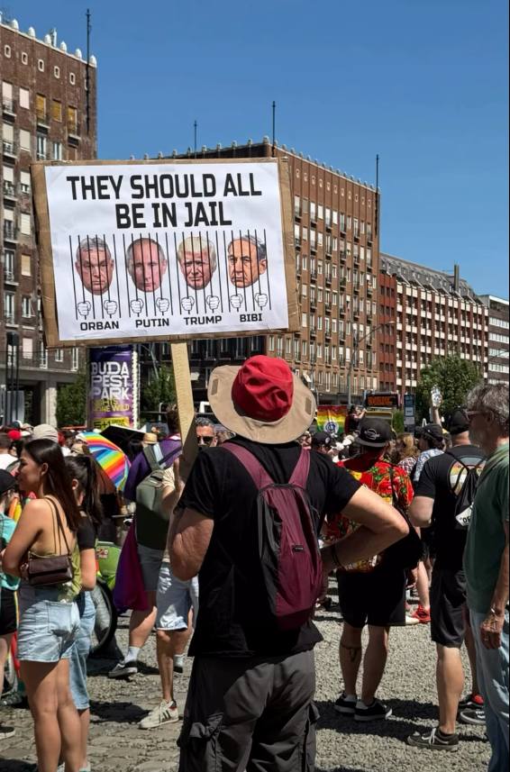 The Hungarian gay parade, attended by Pärnu Deputy Mayor Irina Talviste. The poster (pictured) that was carried at the parade is interesting, it shows how confused the parade participants are. They want to see our greatest ally, the US president, behind bars, along with the war criminal Putin.
