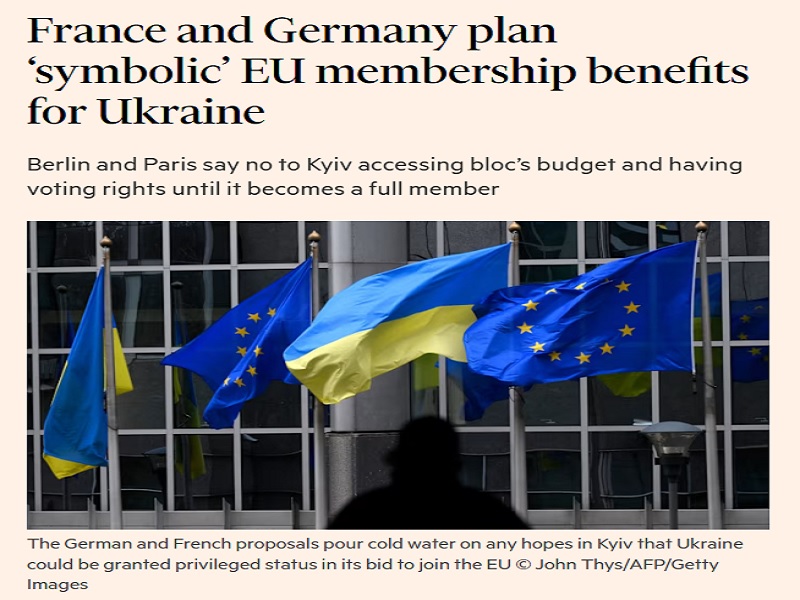 The Financial Times cited documents that they purportedly saw to report that “France and Germany plan ‘symbolic’ EU membership benefits for Ukraine”. The difference between their latest proposal and the European Commission’s recently proposed “reverse membership”, which was analyzed here, “revolves around when Ukraine can call itself an EU member and gain the power to vote in the bloc’s decision-making councils.” The Franco-German Entente’s proposal would slow everything down significantly.
