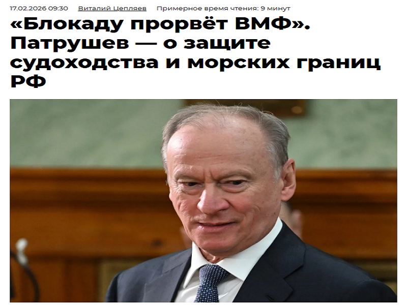 Nikolai Patrushev, who’s been one of Putin’s top aides for decades already and is now also the Chairman of the Maritime Board, gave an interview to Arguments & Facts in mid-February. He began by condemning the seizure of Russian-flagged vessels as “piracy” and said that Russia is preparing responses to this. In his words, “If we don’t respond firmly, the British, French, and even the Baltic states will soon become so brazen that they will attempt to completely block our country’s access to the seas”.
