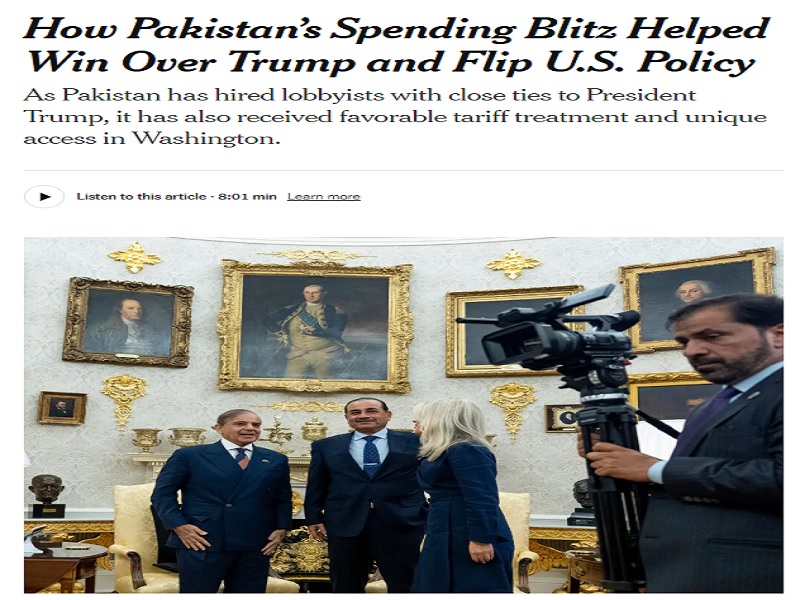 The New York Times (NYT) published a report about “How Pakistan’s Spending Blitz Helped Win Over Trump and Flip U.S. Policy”, the gist of which is that lobbying played an important role in the rapid US-Pakistani rapprochement. They acknowledge that factors beyond Pakistan’s control were also significant, such as India declining to go along with Trump’s claim of mediating spring’s ceasefire or make major concessions on trade, but they argue that the access gained by lobbying greatly accelerated this process.